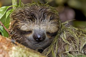 Ganz gemütlich schläft das Dreifinger-Faultier hoch oben in den Bäumen.